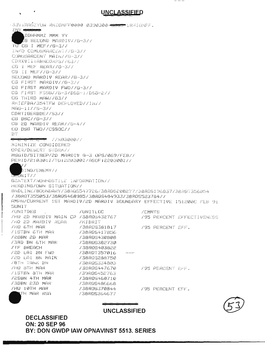 Document 4 f:/Week-35/BX600014/COMMAND CHRONOLOGY 2ND MARINE DIVISION SUPPORTING DOCUMENTS 3 OF 10 JAN - APRIL 1991/situation report feb 91:100196125358