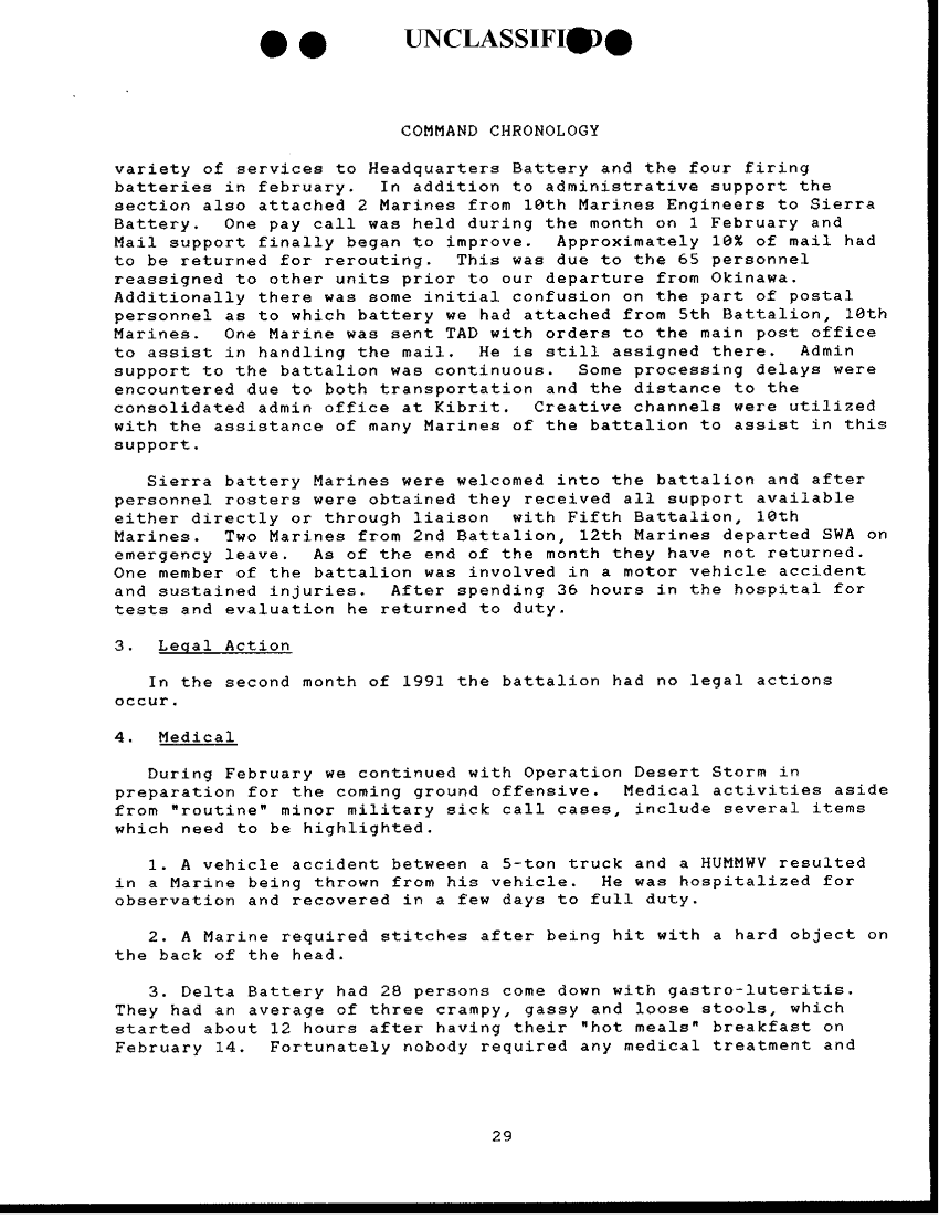 Document 16 f:/Week-38/BX600025/COMMAND CHRONOLOGY 2ND BATTALION 12TH MARINE REGIMENT JUL 90 - JUN 91/command chronology for period 1 feb to 28 feb 19:100196125403