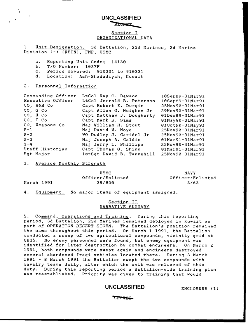 Document 6 f:/Week-35/BX600013/COMMAND CHRONOLOGY 3RD BATTALION 23RD MARINES JAN 1991 1 OF 2/command chronology for the period 1mar 31 mar 91:1004961340213
