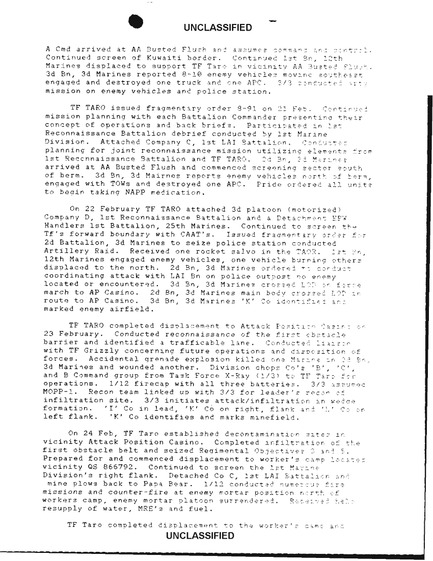 Document 8 f:/Week-35/BX600016/COMMAND CHRONOLOGY 3RD MARINES JAN - FEB 1991/command chronology for the period 1 jan 28 feb:1004961340296
