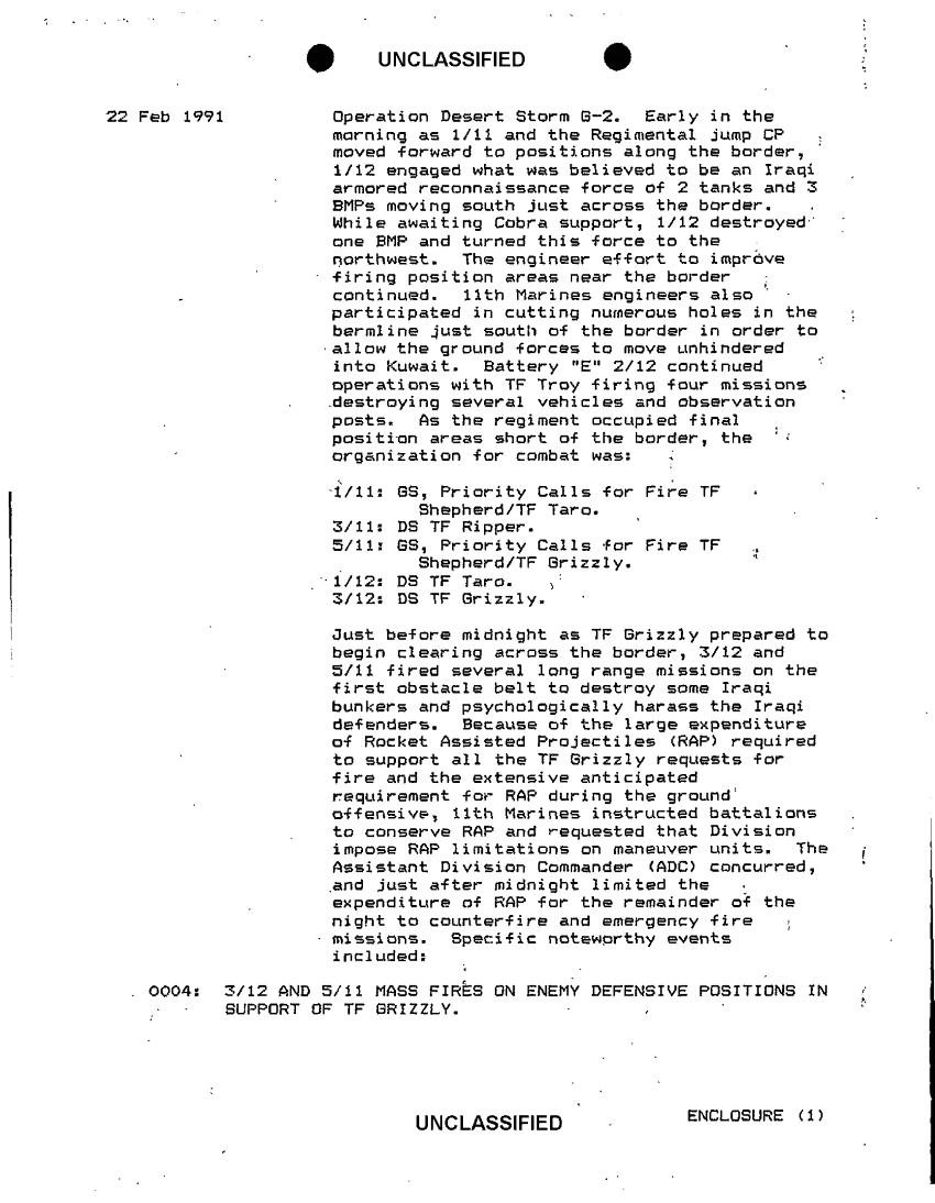 Document 23 f:/Week-36/BX600015/COMMAND CHRONOLOGY 11TH MARINES JAN - JUL 1991/command chronology for 1 jan to 28 feb 91 13 m:10049613410219