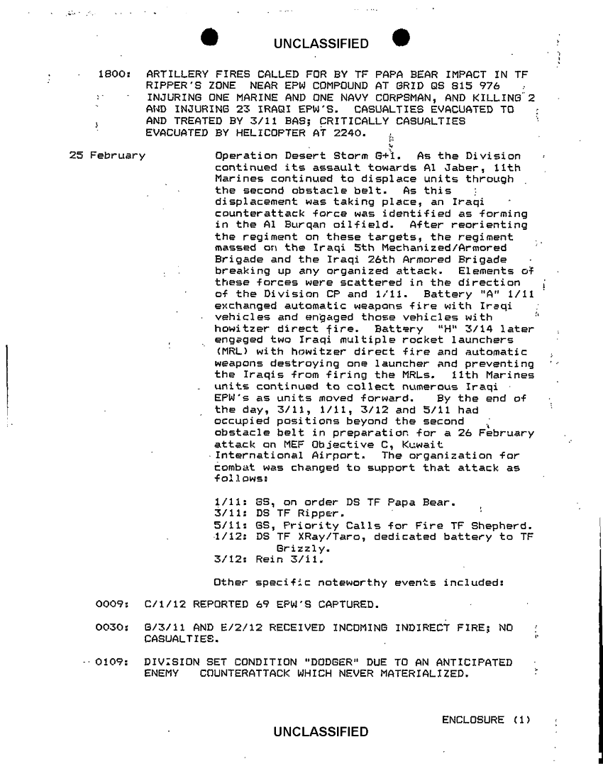 Document 23 f:/Week-36/BX600015/COMMAND CHRONOLOGY 11TH MARINES JAN - JUL 1991/command chronology for 1 jan to 28 feb 91 13 m:10049613410219
