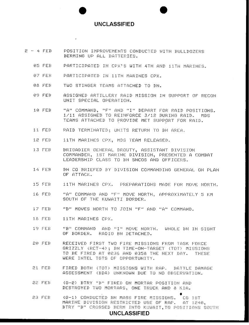Document 14 f:/Week-38/BX600025/COMMAND CHRONOLOGY 3RD BATTALION 12TH MARINE REGIMENT JAN - JUN 1991/command chronology index:10119615450415