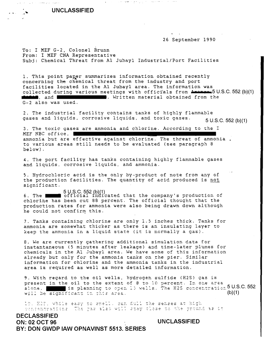 Document 2 f:/Week-38/BX600022/FOLDER 3 INDUSTRIAL CHEMICAL THREAT I MARINE EXPEDITIONARY FORCE CNA 2386/chemical threat from al jubayl industrial port f:10119615450416