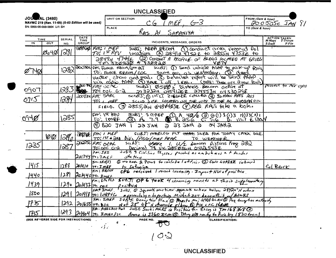 Document 10 f:/Week-37/BX600033/folder message files various sources dt 086 1 of 2/daily staff journal i mef 18 jan 91:1011961544598