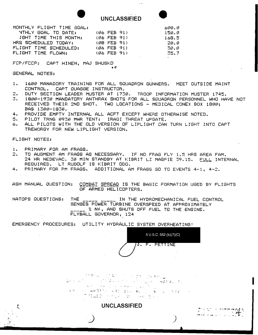 Document 2 f:/Week-38/BX600027/COMMAND CHRONOLOGY HMM 266 FEB 91 - JUN 91/flight schedule for saturday 9 feb 1991 julian d:10189614542220