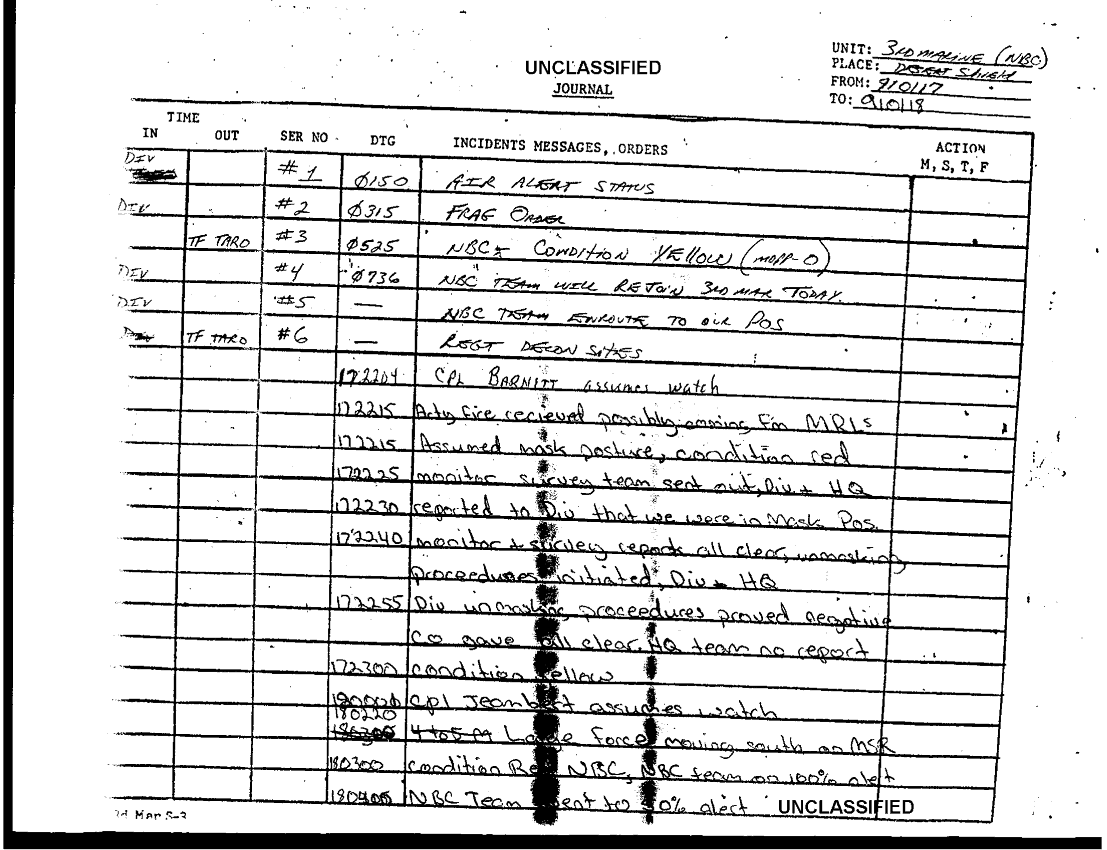 Document 14 f:/Week-38/BX600025/COMMAND CHRONOLOGY 1ST BATTALION 12TH MARINE REGIMENT MAR - JUN 1991 1 OF 3/incidents messages journal orders:10189614542322