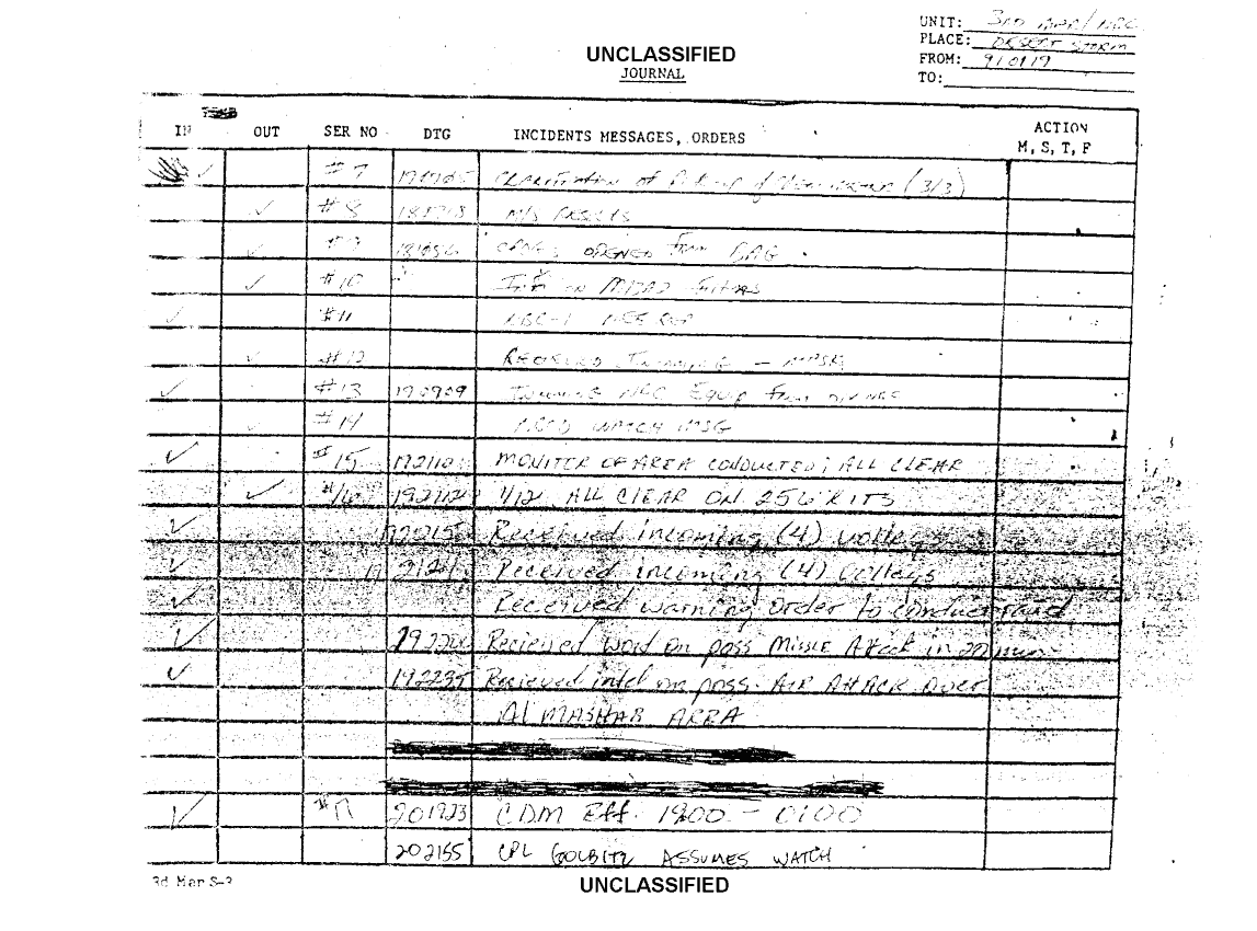 Document 14 f:/Week-38/BX600025/COMMAND CHRONOLOGY 1ST BATTALION 12TH MARINE REGIMENT MAR - JUN 1991 1 OF 3/incidents messages journal orders:10189614542322
