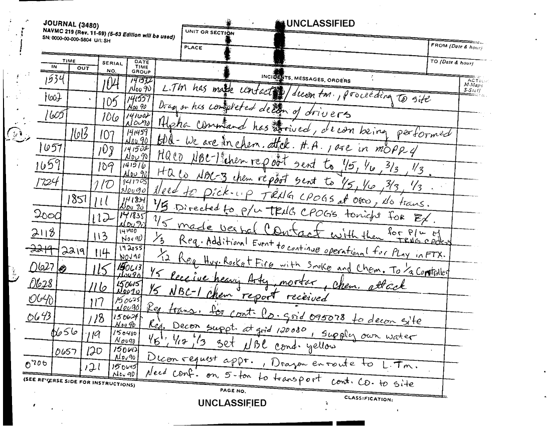 Document 6 f:/Week-38/BX600025/COMMAND CHRONOLOGY 1ST BATTALION 12TH MARINE REGIMENT MAR - JUN 1991 1 OF 3/incidents messages journal orders:10189614542625