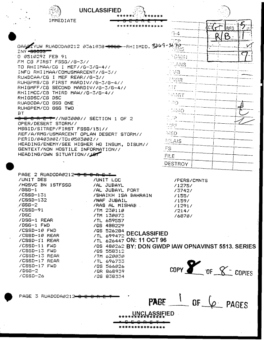 Document 6 f:/Week-38/BX600034/FOLDER 3 FORCE SERVICE SUPPORT GROUP 1 CNA 57 40255/sitrep first fssg 151 5 feb 91:10189614542828