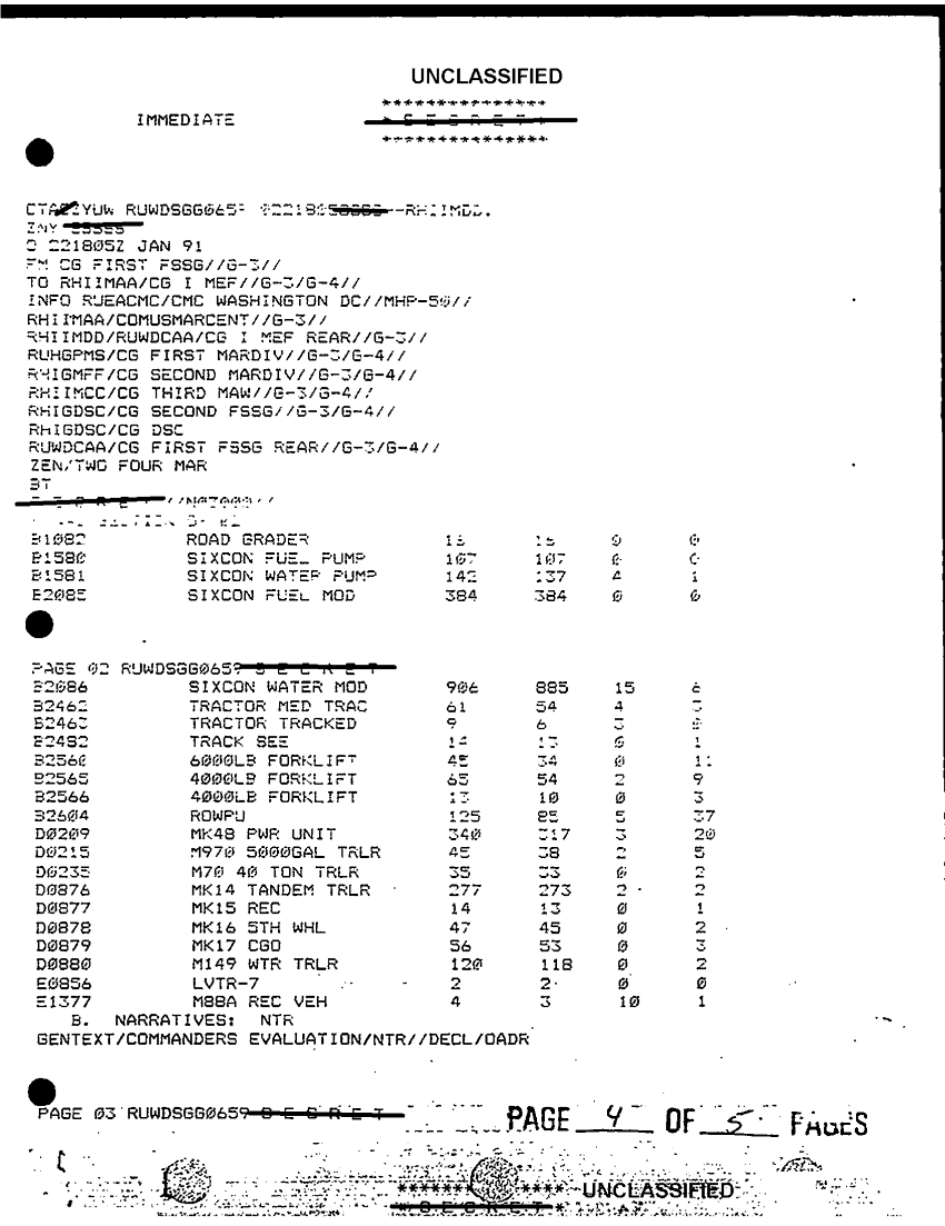 Document 5 f:/Week-38/BX600034/FOLDER 2 FORCE SERVICE SUPPORT GROUP 1 CNA 57 40255/sitrep 136 first fssg 22 jan 91:10189614542929