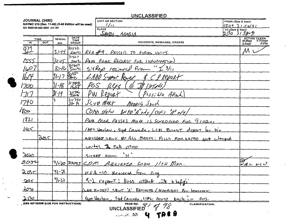Folder Title = COMMAND CHRONOLOGY 1ST BATTALION 11TH MARINES JAN - FEB 1991