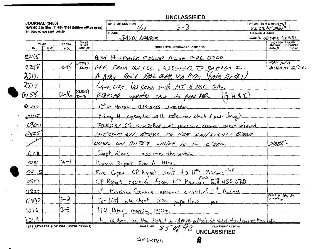 Folder Title = COMMAND CHRONOLOGY 1ST BATTALION 11TH MARINES JAN - FEB 1991