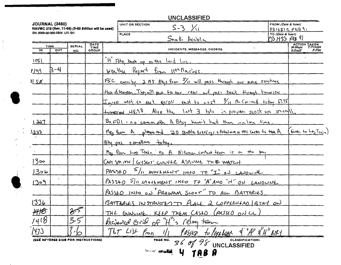 Document 98 f:/Week-36/BX600015/COMMAND CHRONOLOGY 1ST BATTALION 11TH MARINES JAN - FEB 1991/command chronology for period 1 jan to 28 feb 91:1025961320039