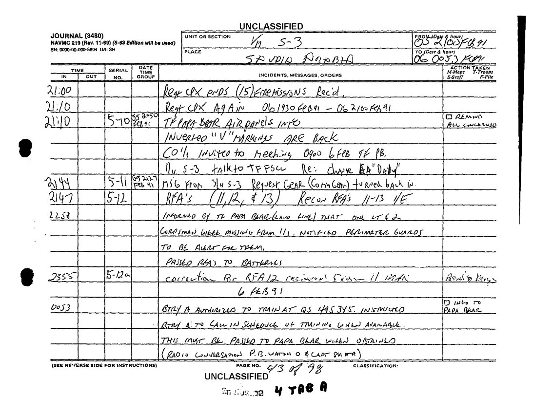 Document 98 f:/Week-36/BX600015/COMMAND CHRONOLOGY 1ST BATTALION 11TH MARINES JAN - FEB 1991/command chronology for period 1 jan to 28 feb 91:1025961320039