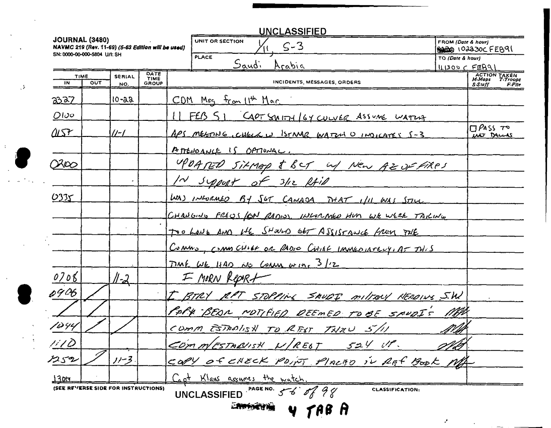 Document 98 f:/Week-36/BX600015/COMMAND CHRONOLOGY 1ST BATTALION 11TH MARINES JAN - FEB 1991/command chronology for period 1 jan to 28 feb 91:1025961320039