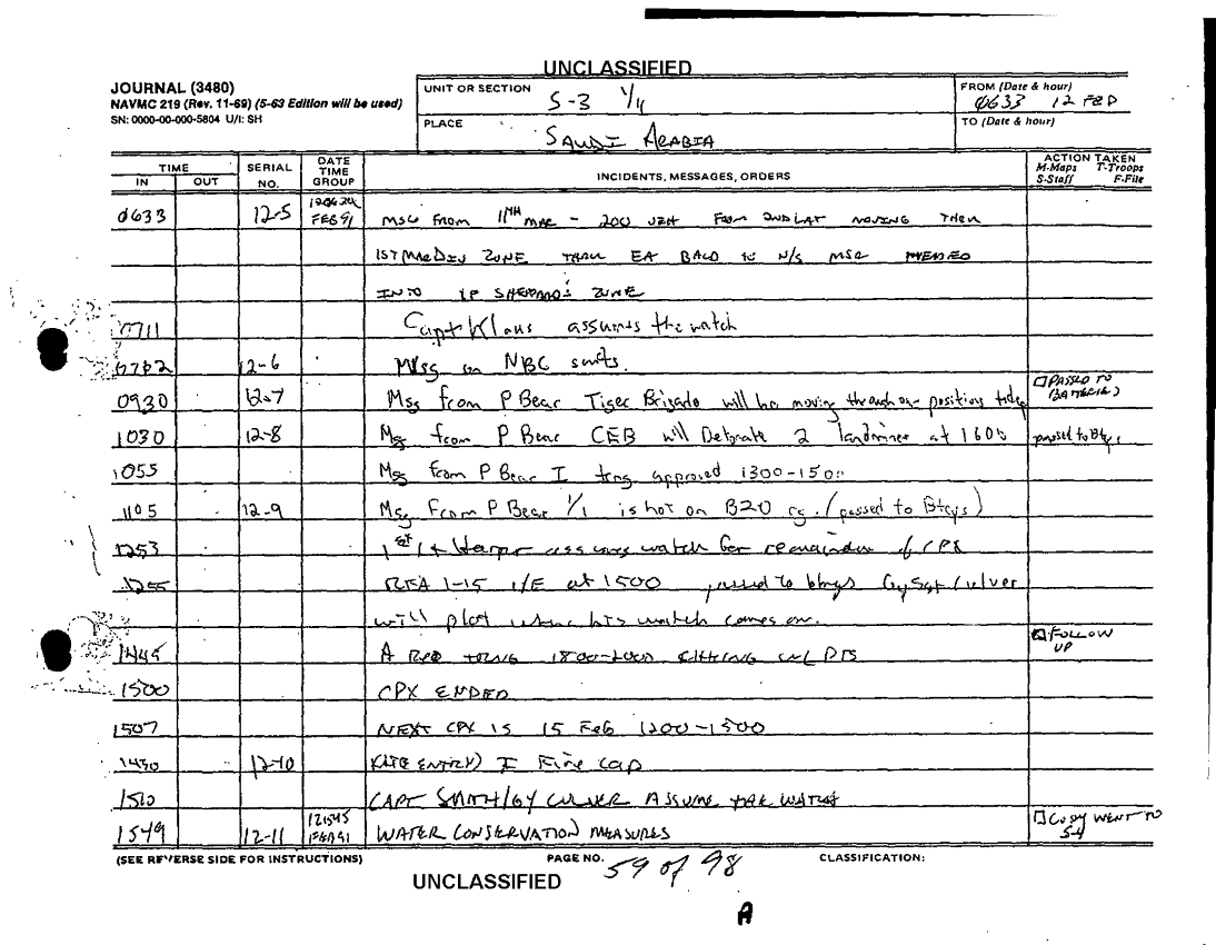 Document 98 f:/Week-36/BX600015/COMMAND CHRONOLOGY 1ST BATTALION 11TH MARINES JAN - FEB 1991/command chronology for period 1 jan to 28 feb 91:1025961320039