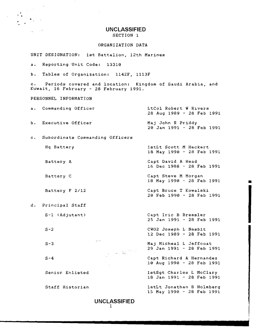 Document 11 f:/Week-38/BX600025/COMMAND CHRONOLOGY 1ST BATTALION 12TH MARINE REGIMENT JAN - FEB 1991/cmd chronology 16 28 feb 91 7 mar 91:10259613200511