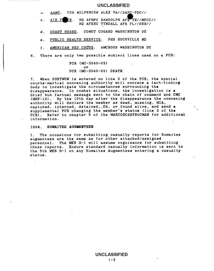 Document 15 f:/Week-34/BX600006/COMMAND CHRONOLOGY 5TH MARINE EXPEDITIONARY BRIGADE SUP. DOCS. 4 OF 5/combat casualty admin procedures:1122961652269