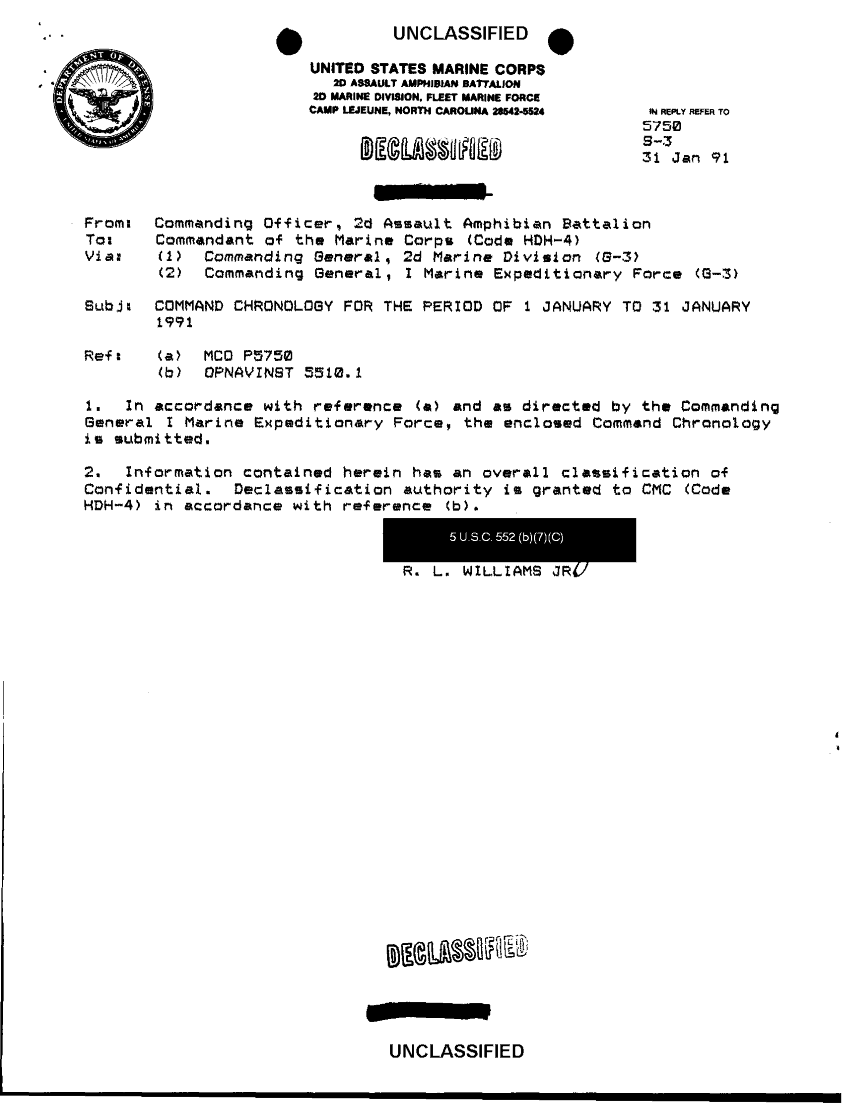 Document 8 f:/Week-42/BX600017/COMMAND CHRONOLOGY 2ND ASSAULT AMPHIBIAN BATTALION JAN - FEB 1991/command chronology for the period 1 to 31 jan 91:11129615130115