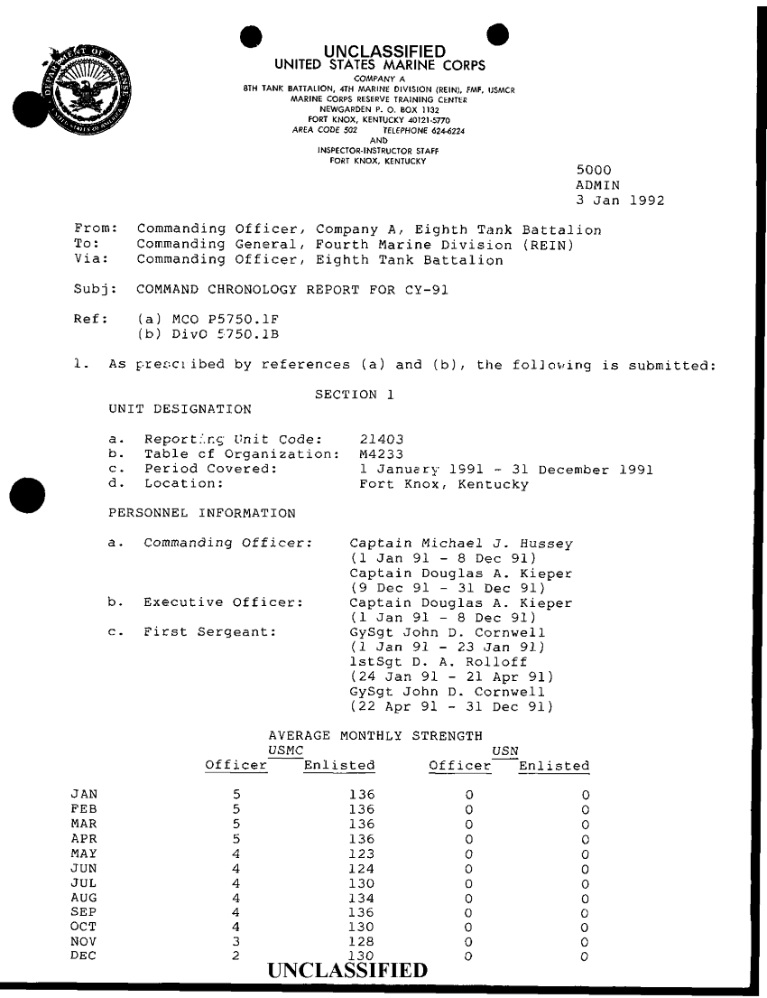 Subject = CMD CHRO RPT CY 91 3JAN 92