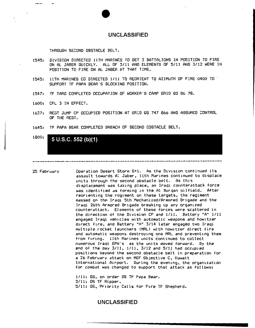 Document 14 f:/Week-42/BX600057/I MEF ACCOUNTS OF COMBAT ACTION/11th marines oper ds summary of significant even:11129615131224