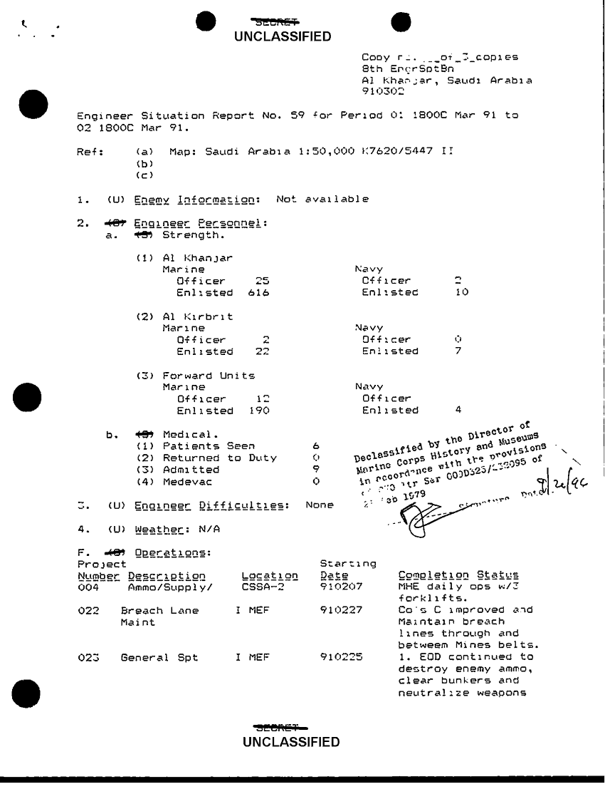 Document 6 f:/Week-42/BX600051/8THENGRSPTBN SITREPS 51-62/engr sitrep rpt 59 for period 1 mar 91 2 mar 91:11129615125410
