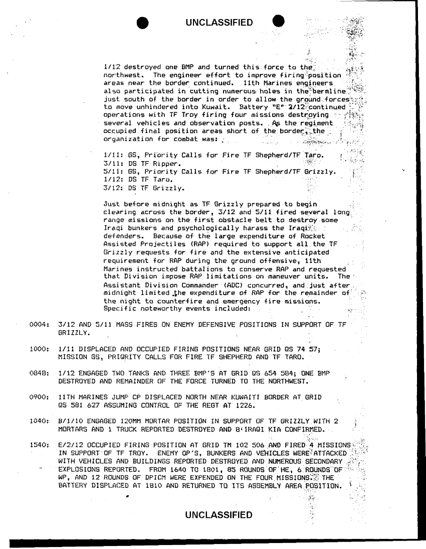 Document 17 f:/Week-38/BX600025/COMMAND CHRONOLOGY 3RD BATTALION 12TH MARINE REGIMENT JAN - JUN 1991/marines summary of action:11129615130518
