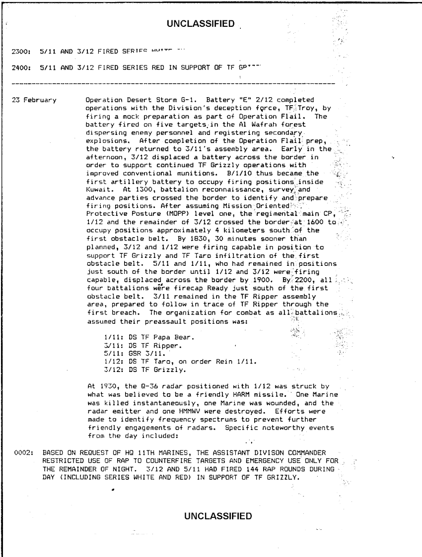Document 17 f:/Week-38/BX600025/COMMAND CHRONOLOGY 3RD BATTALION 12TH MARINE REGIMENT JAN - JUN 1991/marines summary of action:11129615130518