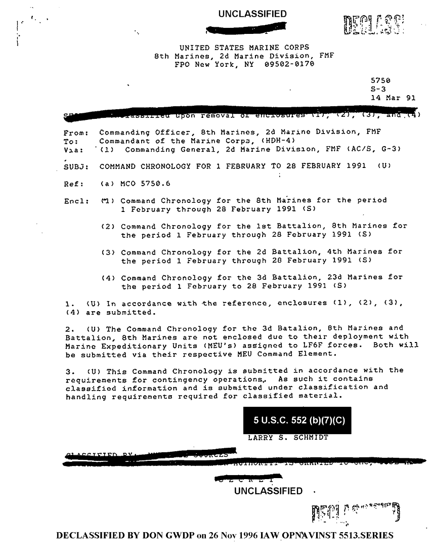 Folder Title = COMMAND CHRONOLOGY 8TH MARINES - 1-28 FEBRUARY 1991