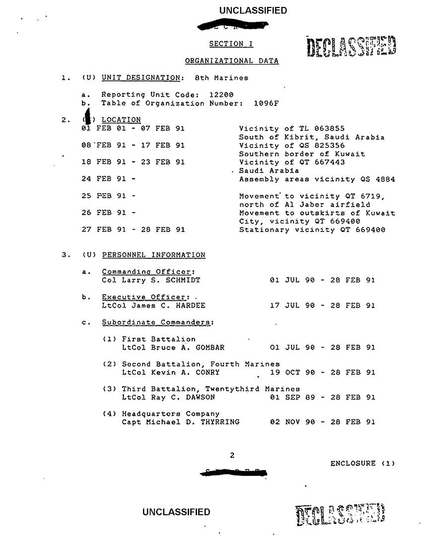 Document 15 f:/Week-34/BX600007/COMMAND CHRONOLOGY 8TH MARINES - 1-28 FEBRUARY 1991/command chronology for 1 feb to 28 feb 1991:12069615401634