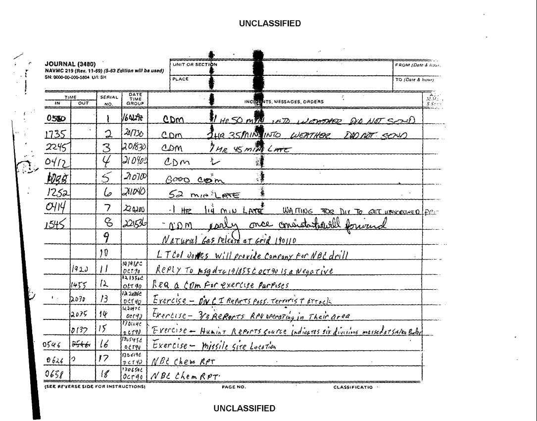 Document 2 f:/Week-38/BX600025/COMMAND CHRONOLOGY 1ST BATTALION 12TH MARINE REGIMENT MAR - JUN 1991 1 OF 3/incidents messages journal orders:1206961540012
