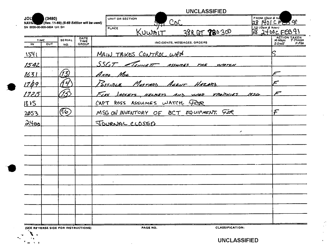 Document 17 f:/Week-36/BX600015/COMMAND CHRONOLOGY 5TH BATTALION 11TH MARINES JOURNEL FILES JAN - FEB 1991 2 OF 2/daily journal 28feb91:12069615401735
