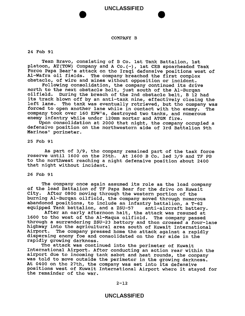Document 5 f:/Week-38/BX600020/COMMAND CHRONOLOGY 1ST TANK BATTALION JAN - DEC 1991/company b manuver operations to kuwait 24 :1217961001338