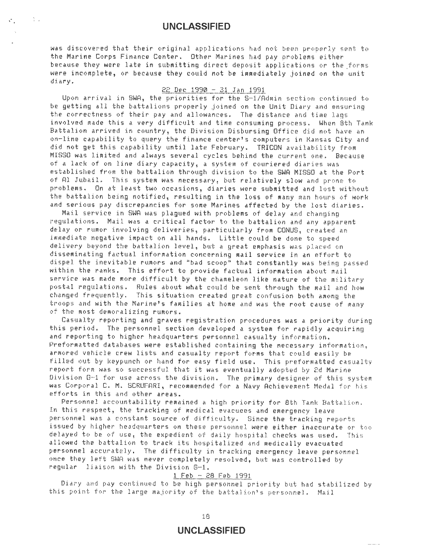 Document 60 f:/Week-34/BX600007/COMMAND CHRONOLOGY 8TH MARINES APRIL - JUNE 1990/8th tank bn command chronology nov 90 to mar 91:01029709504216