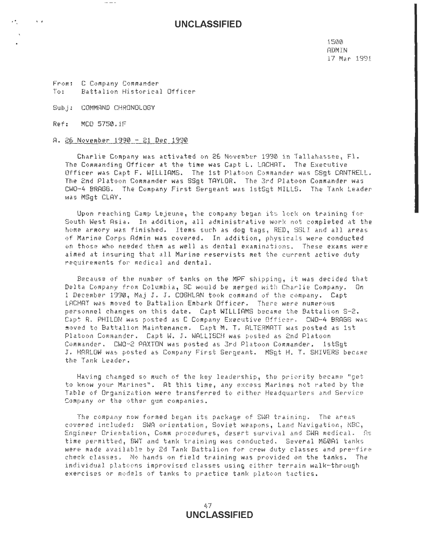Document 60 f:/Week-34/BX600007/COMMAND CHRONOLOGY 8TH MARINES APRIL - JUNE 1990/8th tank bn command chronology nov 90 to mar 91:01029709504216
