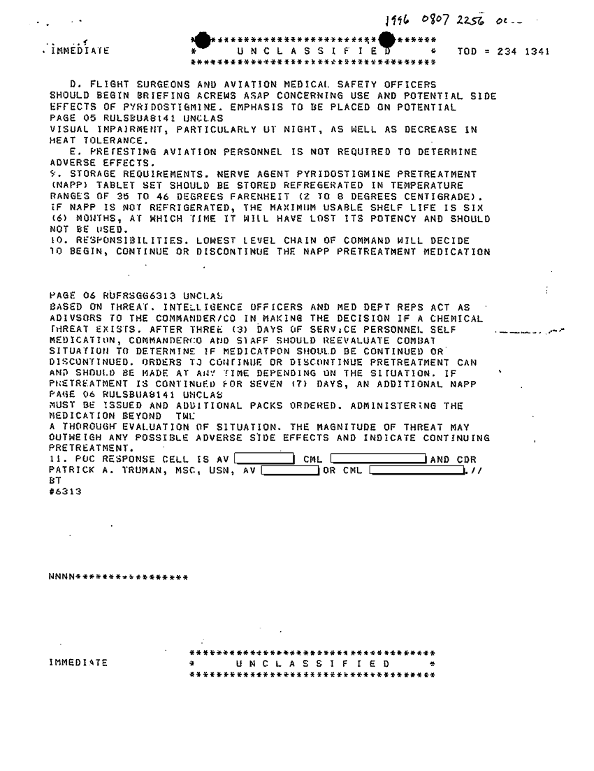 Document 3 f:/Week-44/BX600093/FOLDER NAVAL MESSAGE FILES AUG OCT 90 ARMY REFERRAL/puridostigmine bromide pretreatment for nerve ag:01029709371915
