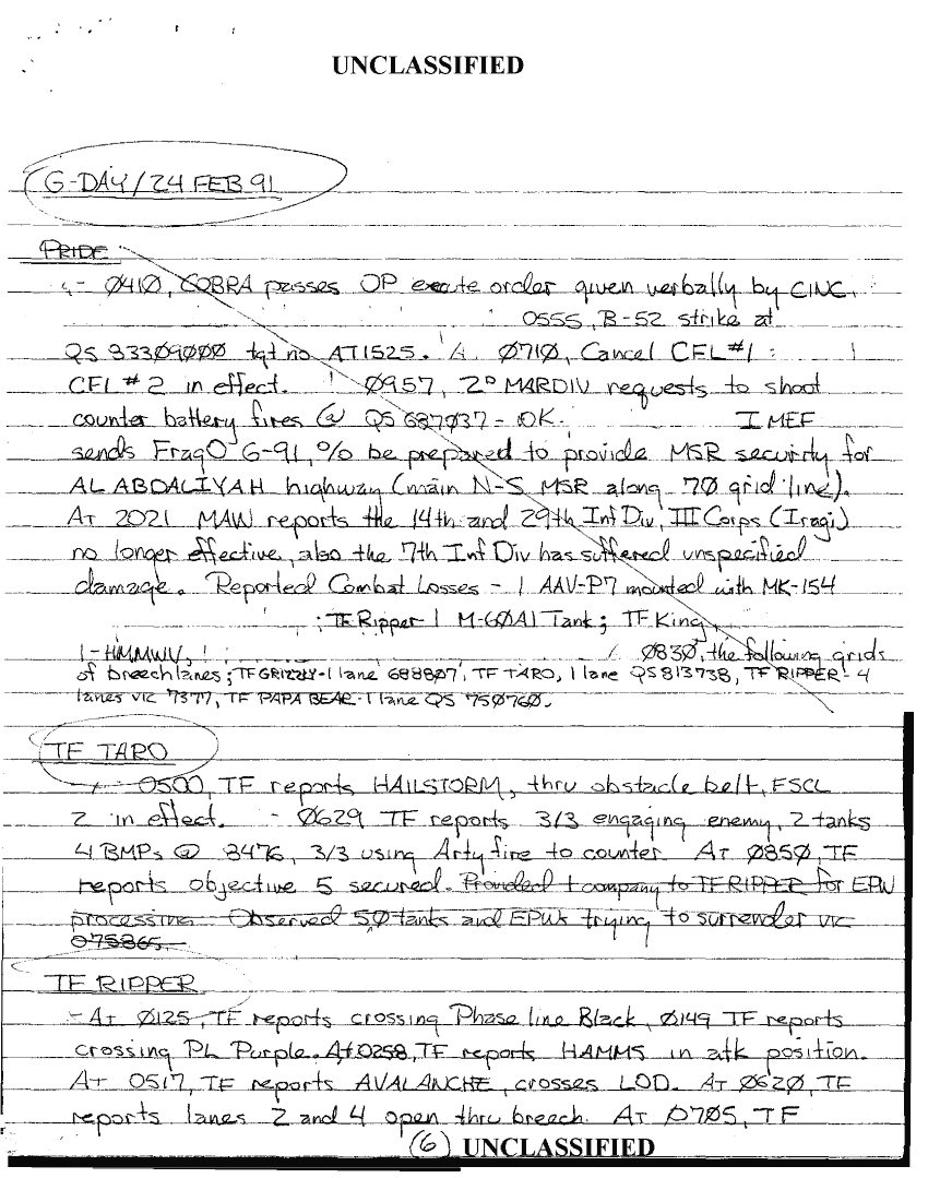 Folder Title = 1ST MARDIV DESERT STORM COMBAT HISTORY NOTES D-3 - D+5