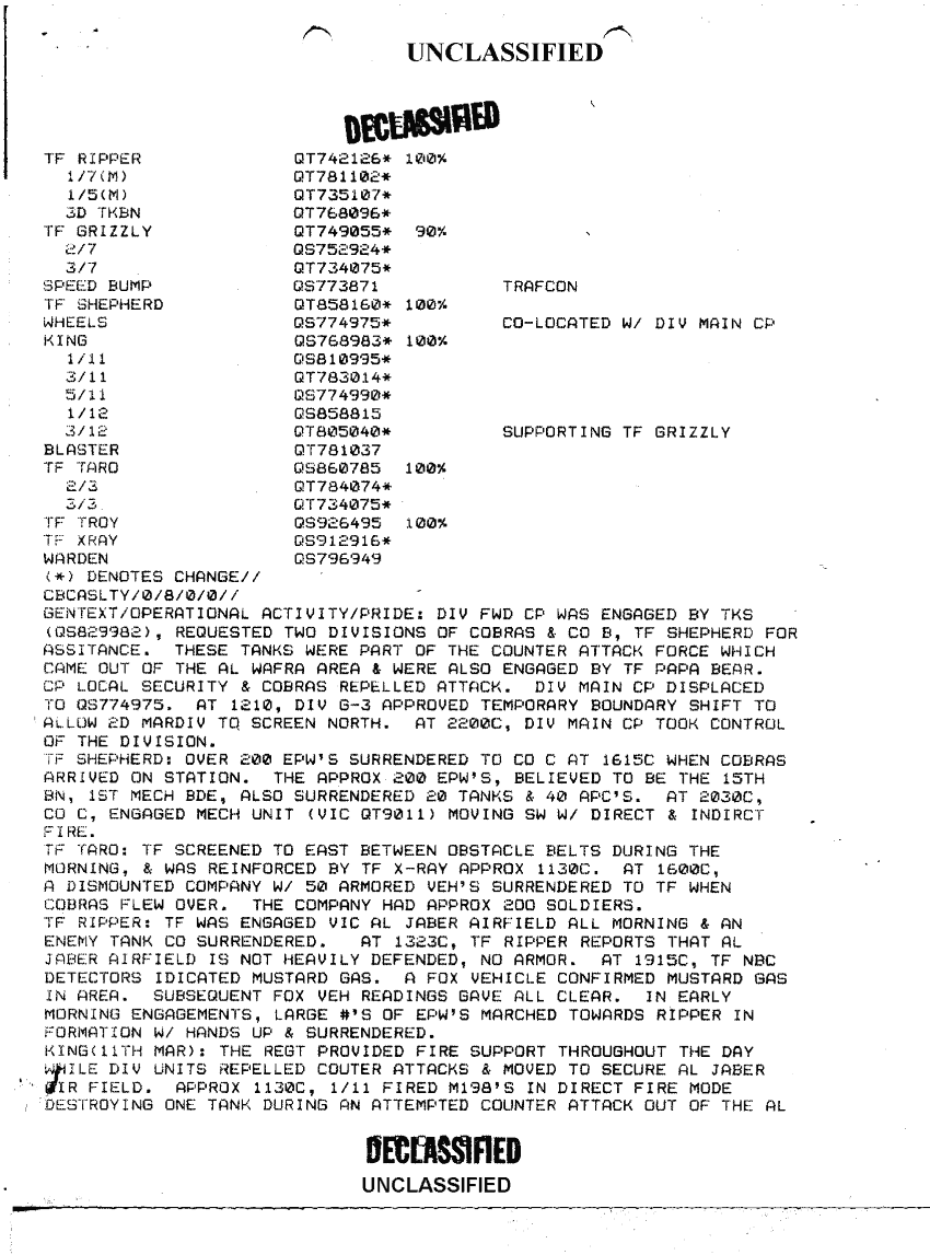 Document 3 f:/Week-41/BX600049/1ST MARINE DIVISION SITREPS 1 JAN - 27 91/sitrep 180 cg first mardiv fwd 26 feb 91:01029709503710