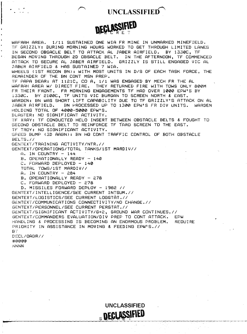 Document 3 f:/Week-41/BX600049/1ST MARINE DIVISION SITREPS 1 JAN - 27 91/sitrep 180 cg first mardiv fwd 26 feb 91:01029709503710