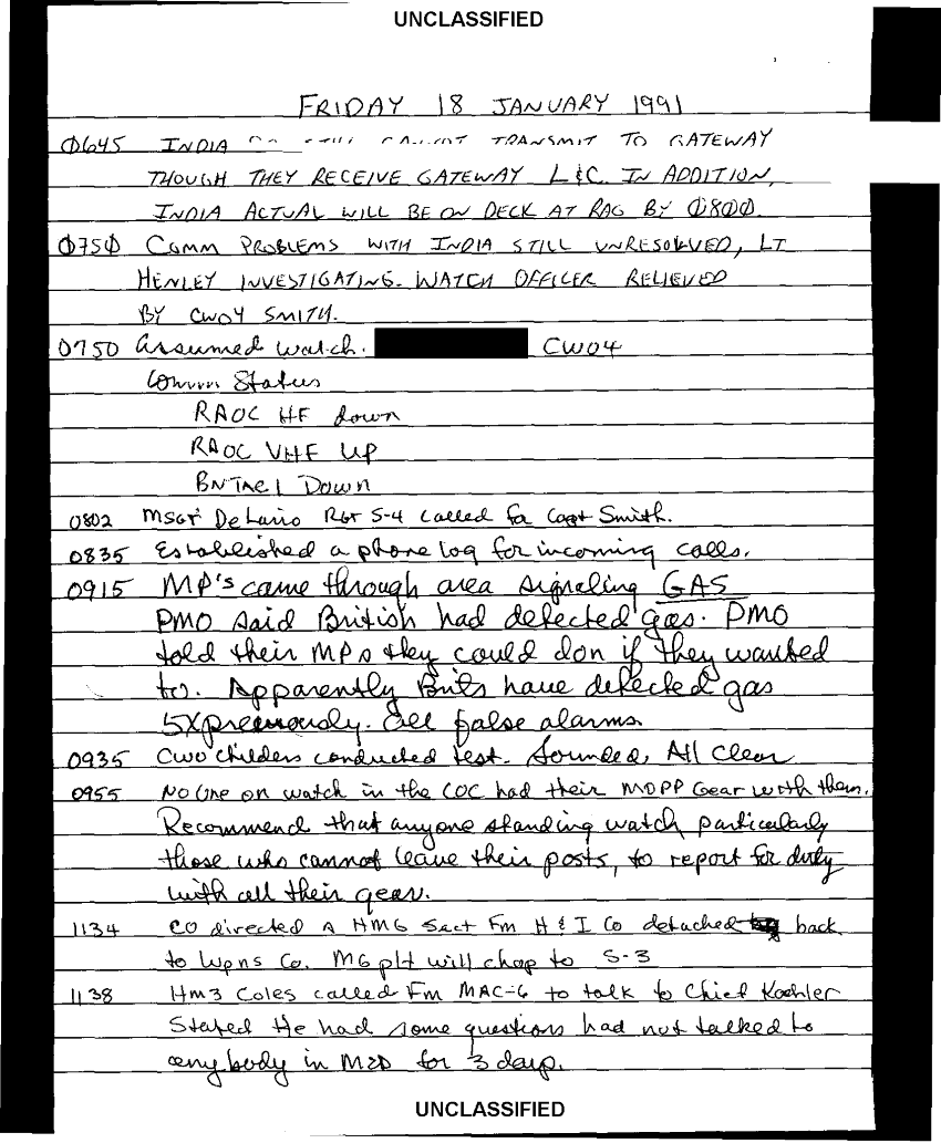 Document 103 f:/Week-35/BX600013/COMMAND CHRONOLOGY 3RD BATTALION 24TH MARINES JAN - MAR 1991 4 OF 4/handwritten log:0102970950272