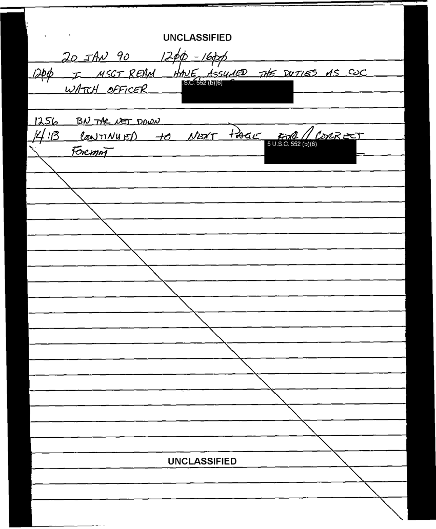 Document 103 f:/Week-35/BX600013/COMMAND CHRONOLOGY 3RD BATTALION 24TH MARINES JAN - MAR 1991 4 OF 4/handwritten log:0102970950272