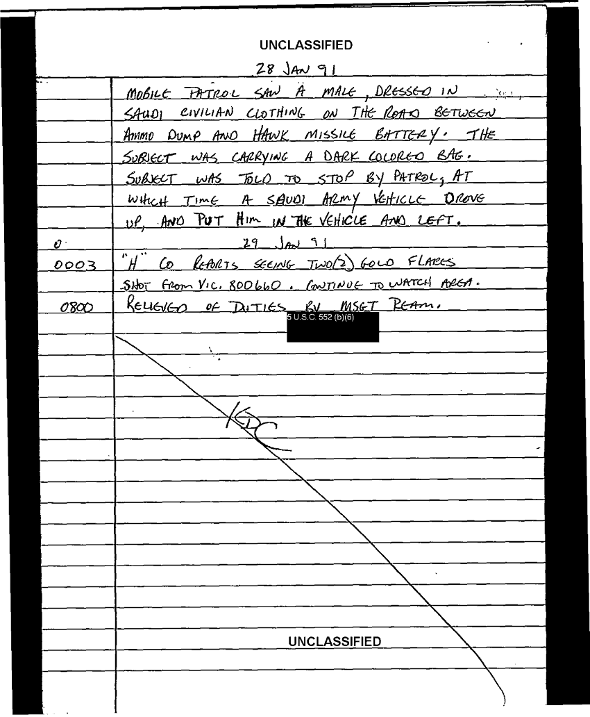 Document 103 f:/Week-35/BX600013/COMMAND CHRONOLOGY 3RD BATTALION 24TH MARINES JAN - MAR 1991 4 OF 4/handwritten log:0102970950272