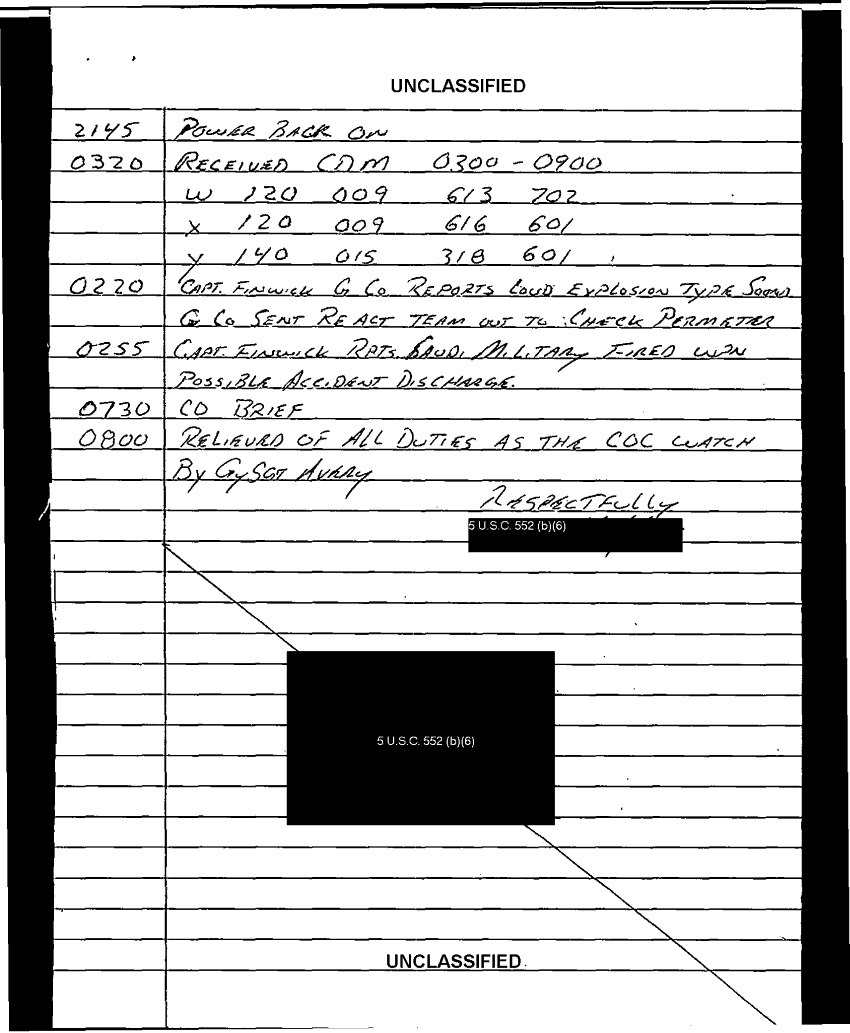 Document 103 f:/Week-35/BX600013/COMMAND CHRONOLOGY 3RD BATTALION 24TH MARINES JAN - MAR 1991 4 OF 4/handwritten log:0102970950272
