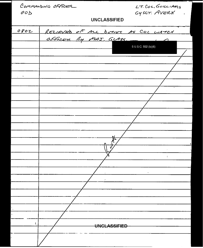 Document 103 f:/Week-35/BX600013/COMMAND CHRONOLOGY 3RD BATTALION 24TH MARINES JAN - MAR 1991 4 OF 4/handwritten log:0102970950272