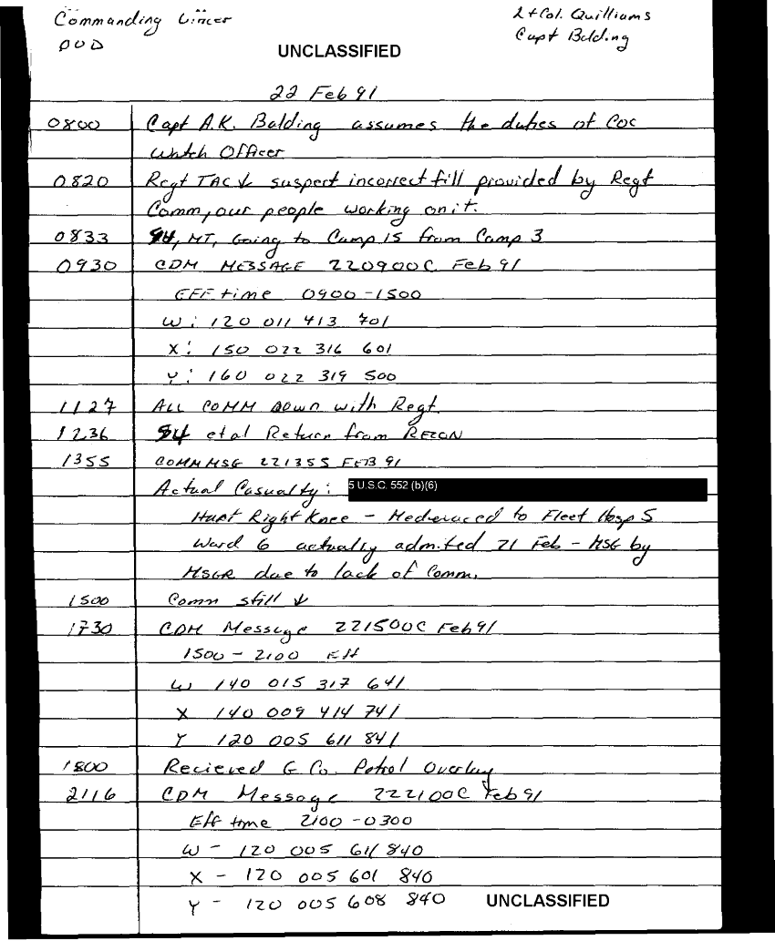 Document 103 f:/Week-35/BX600013/COMMAND CHRONOLOGY 3RD BATTALION 24TH MARINES JAN - MAR 1991 4 OF 4/handwritten log:0102970950272