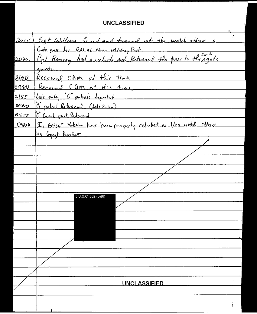 Document 103 f:/Week-35/BX600013/COMMAND CHRONOLOGY 3RD BATTALION 24TH MARINES JAN - MAR 1991 4 OF 4/handwritten log:0102970950272