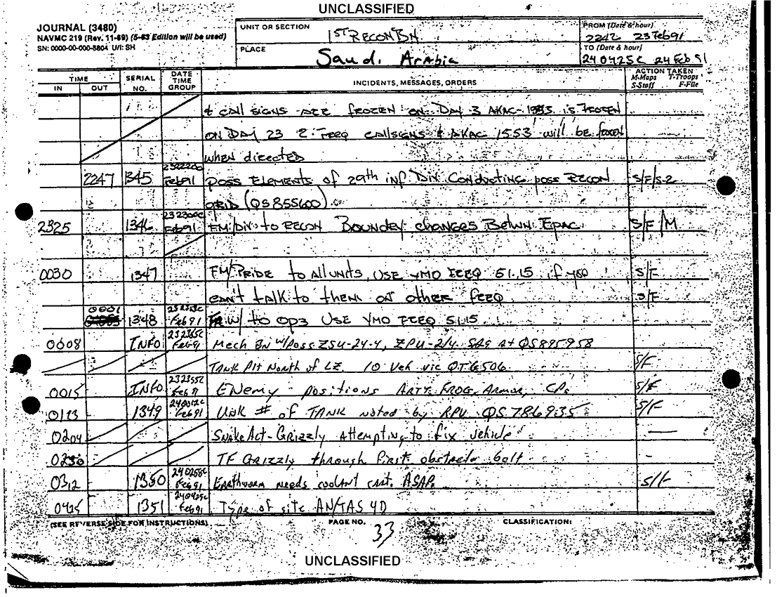 Document 8 f:/Week-38/BX600020/COMMAND CHRONOLOGY 1ST RECONNAISSANCE BATTALION JAN - MAR 1991/1st recon bn journal 24 feb 91:01029709503812