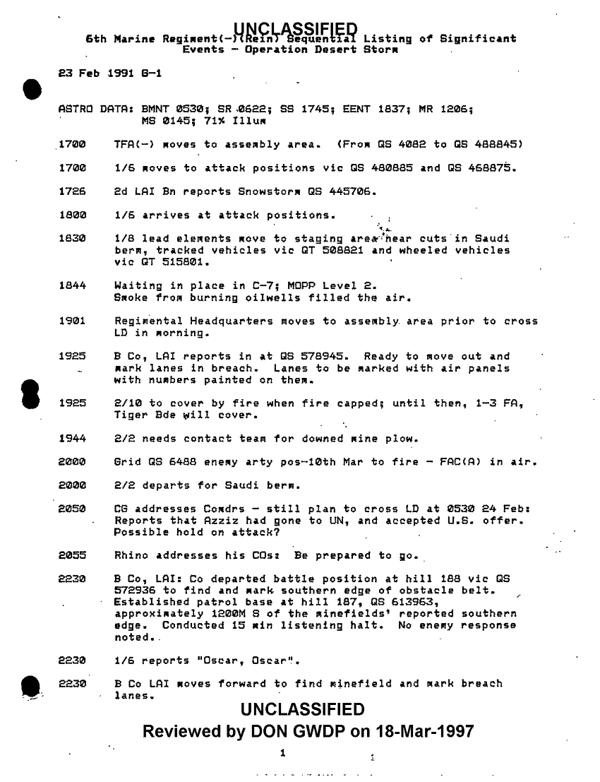 Document 47 f:/Week-51/BX600094/BATTLE ASSESSMENT DOCUMENTATION TABS B-M/6th marine regiment sequential listing of significant events:03249710491612