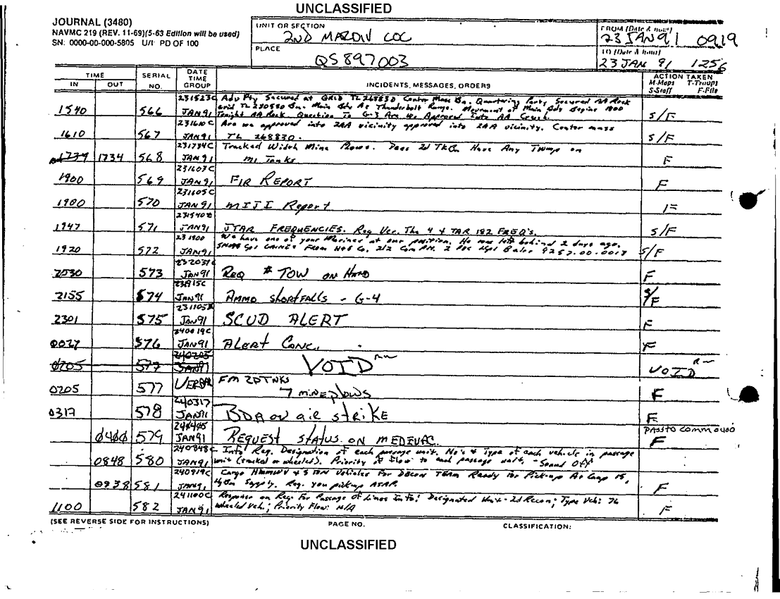 Subject = JOURNAL 2D MARDIV SUPPORTING DOCS SEP 90